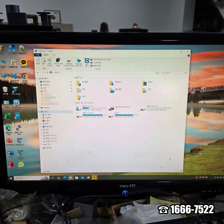 두 달 만에 프로그램을 다 설치하셨고 각종 설정까지 마치신 모양입니다. 힘들죠? 비용 부담이 있긴 하지만 가장 확실한 방법이라고 생각하셨던 모양입니다. 잠시 상태를 확인합니다. 내 PC에 진입해 드라이브 용량부터 확인했습니다. 그리고 삼성 DB400T3A 컴퓨터는 Intel(R) Core(TM) i5-2400 CPU로 구성됐습니다. 작업실에서 사용하기에 전혀 문제는 없었습니다. 드라이버 충돌도 없었습니다.
