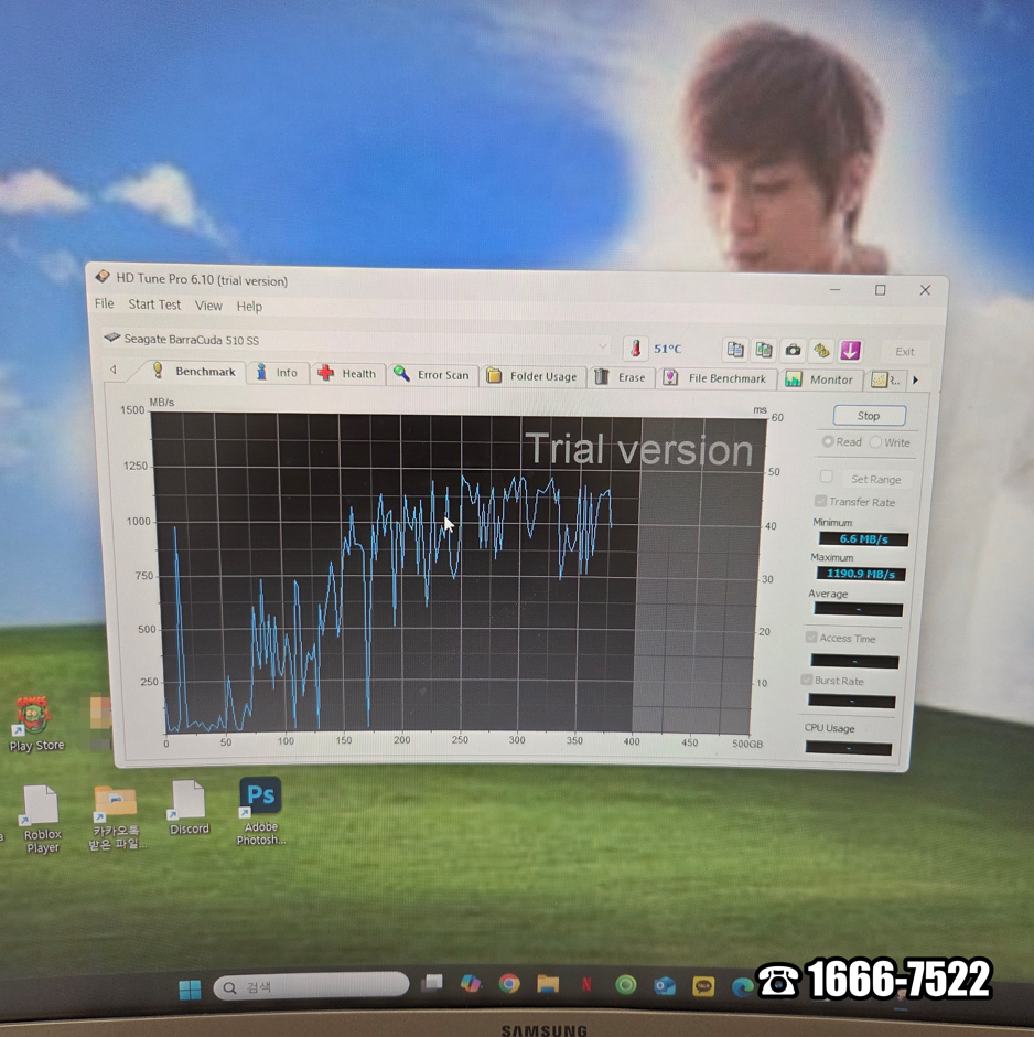 내 PC에 진입해 C드라이브 용량부터 확인했습니다. 항상 비슷하죠? ㅎㅎㅎ AMD Ryzen 5 3500 CPU 구성에 드라이버 충돌도 보이지 않았습니다. 하지만 HD Tune Pro를 실행해 Seagate BarraCuda 510 SSD ZP500CM30001을 테스트했는데... 윈도우11 특성이 보였고 무거웠습니다. ㅠㅠ 더군다나 아무것도 안하는 상태에서도 51도까지 올라갑니다. 흠... 게임이라도 한다면 치명적이겠죠?