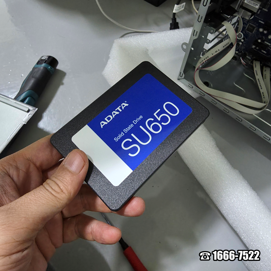 그나마 데이터 백업은 완료했으니 큰 문제는 되지 않습니다. 덮개를 열었습니다. 그리고 SAMSUNG H670S2/SEC 메인보드에서 고장난 SSSTC CL4-8D256을 탈착했습니다. 대용량 자료는 다루지 않아서 M.2 NVMe 방식은 발열에 취약해서 보다 안정적으로 사용하시라고 SATA SSD 방식을 권해 드렸습니다. ADATA SU650 SSD 256GB를 장착해 드렸죠. 그리고 삼성전자 서비스센터 기사가 고장이라던 GeForce GTX 1050 그래픽카드도 다시 장착해 드렸습니다.