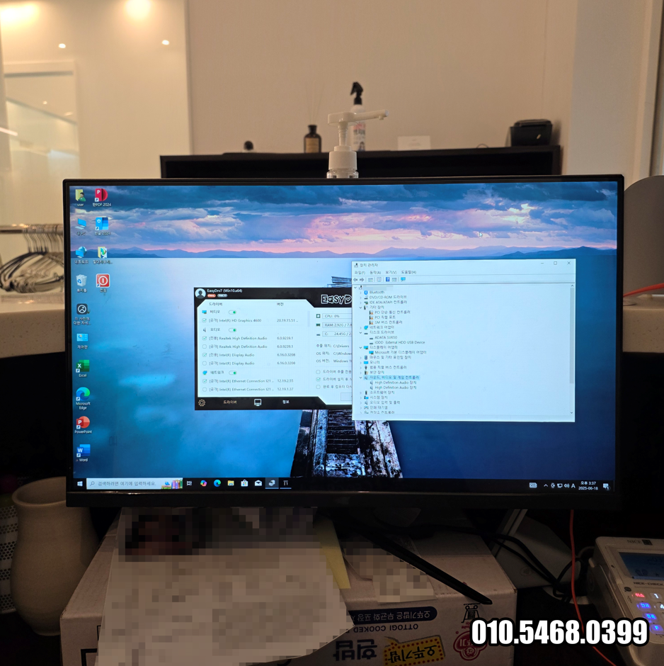 Intel(R) Core(TM) i5-4570T CPU 구성은 무조건 윈도우10으로 설치할 수밖에 없습니다. 파티션은 나누지 않았습니다. 각종 드라이버는 EasyDrv7을 실행해 설치했습니다. 매장 내에는 HP Officejet Pro 9018 복합기도 있어서 연결해 드렸습니다. 이전보다는 많이 빨라졌지만 다음에 고장 나면 차라리 일체형PC라도 사용하시라고 말씀드렸습니다. 지금까지 강서구 우장산동 컴퓨터수리의 찐 후기였습니다.