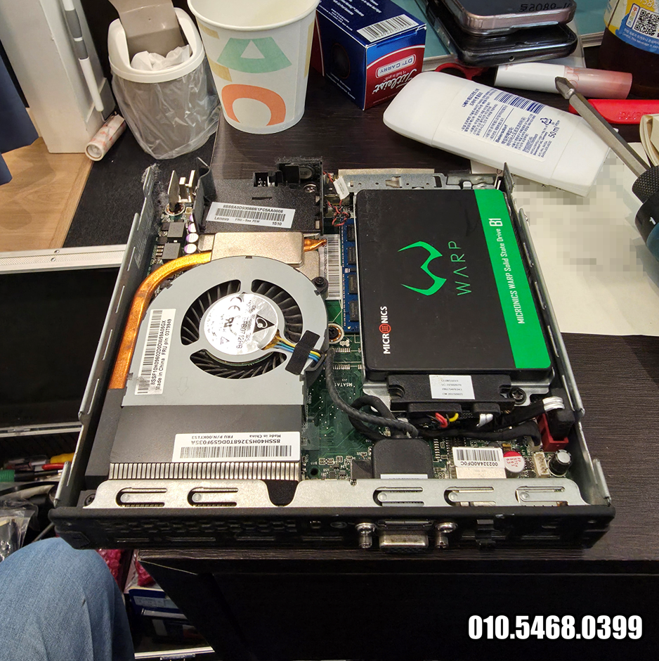 Lenovo ThinkCentre M93p 미니PC는 진짜 작죠? 발열을 얼마나 효율적으로 차단할지 모르겠습니다. 케이스를 만져도 진짜 뜨겁더라고요 ㅠㅠ 상단 덮개를 열었고 가이드와 함께 고장난 MICRONICS WARP B1 SSD 256GB를 탈착했습니다. 그리고 가이드에 ADATA SU650 SSD 256GB를 조립하고 장착했습니다. 그나마 발열은 좀 벗어나겠네요^^