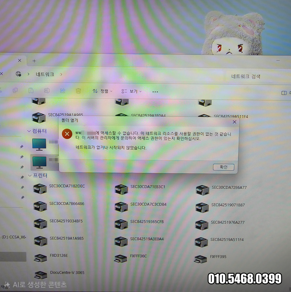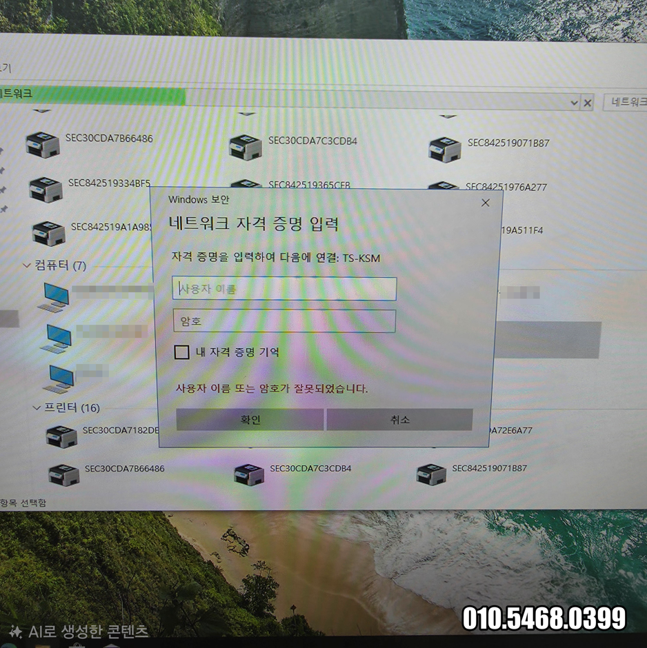 네트워크 폴더에 다시 진행을 시도했습니다. 로그인 화면은 뜨지만 계정을 알고 계시더라구요^^ 모든 파일이 잘 열립니다. 사무실 내에 다른 조립PC도 동일한 증상이 발생하고 있습니다. 선택은 본인 몫입니다. 윈도우10 다운그레이드를 할 건지? 아니면 네트워크 설정 변경으로 간단해 해결하던지? 지금까지 은평구 증산동 컴퓨터수리의 찐 후기였습니다.