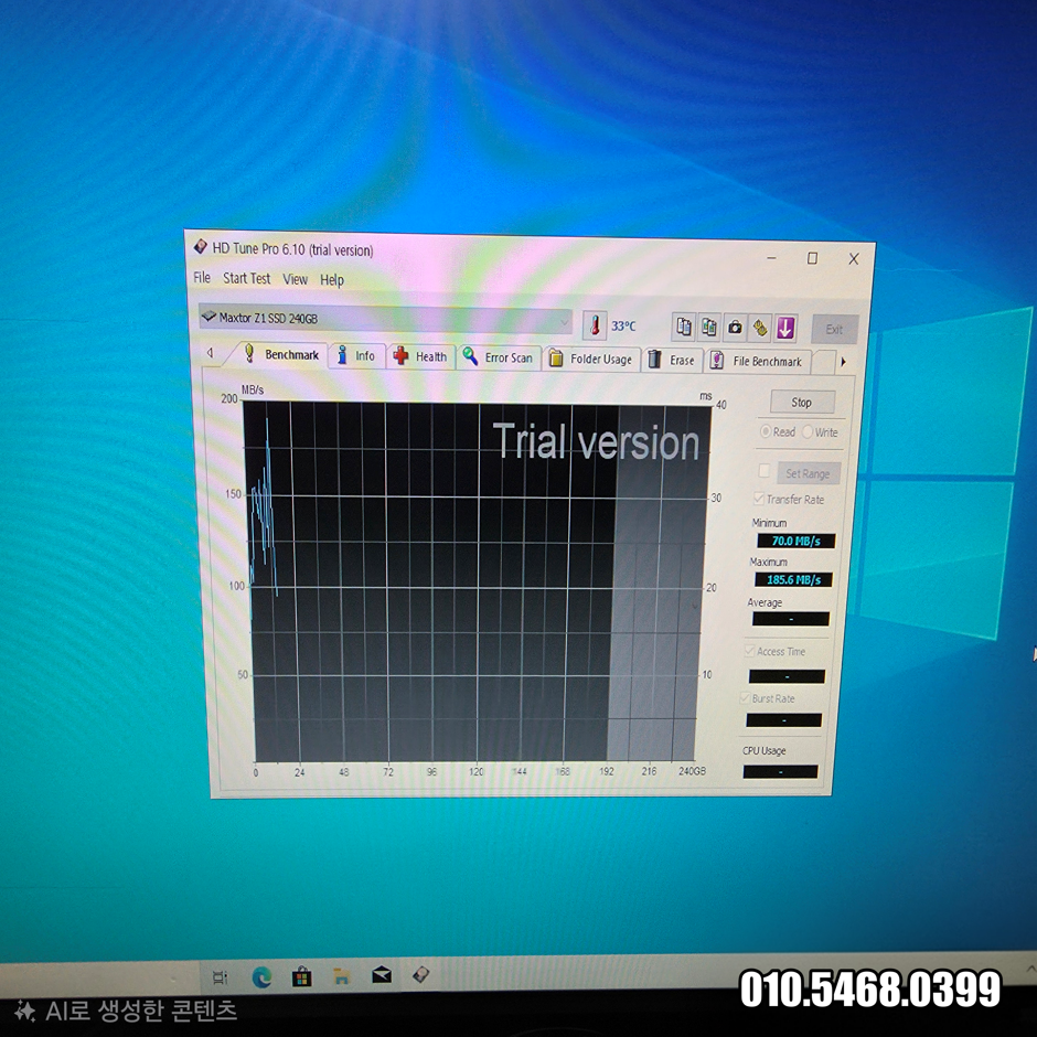 이렇게 부품 고장을 찾는데 여러 단계를 거쳐야 합니다. 눈으로 보고 증상만 보고 절대 판단할 수 없습니다. 그만큼 예민하니까요^^ 전원을 켜봤습니다. 윈도우 부팅도 잘 됐고 내 PC에 C드라이브도 용량이 컸습니다. Intel(R) Core(TM) i5-2500 CPU 구성이고 드라이버 충돌도 없었습니다. HD Tune Pro를 실행해 Maxtor Z1 SSD 240GB를 테스트했는데 고장 증상은 없었습니다. 지금까지 양천구 신월동 컴퓨터수리의 찐 후기였습니다.