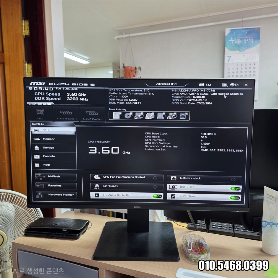 고성능 조립PC도 윈도우11은 불안정한 경우가 많습니다. 동일한 사양이라고 해도 잘 사용하는 분들은 잘 사용합니다. 아이러니하죠? 하지만 사용 환경은 완전히 다르더라고요^^ 금천구 시흥동 컴퓨터수리는 재부팅하고 단축키 F2를 눌러 MSI A520M-A PRO 메인보드 바이오스에 진입했습니다. Advanced (F7)를 클릭해 고급 모드로 이동했고 Settings - Save & Exit 순으로 진입해 iODD Virtual CDRom을 선택했습니다.
