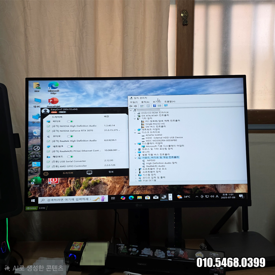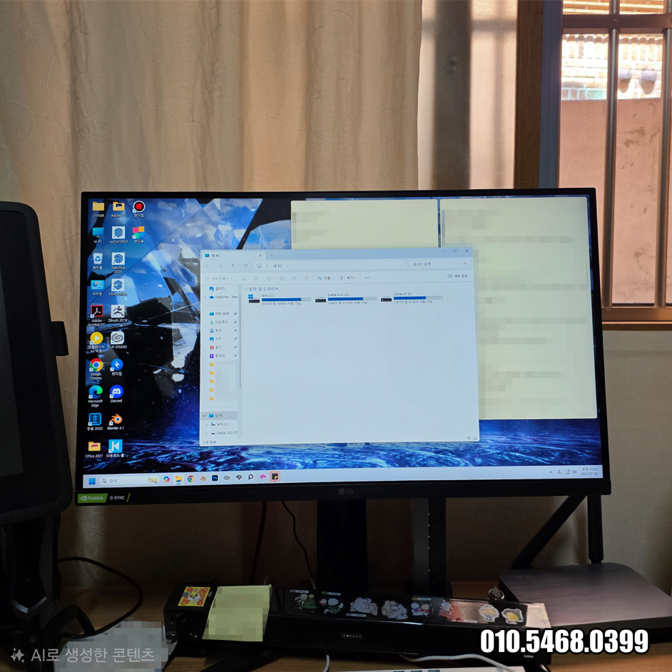 최소한 발열에서는 벗어날 수 있기 때문에 오히려 속도는 더 빠르게 느끼실 겁니다. 윈도우10 설치로 진행했고 백업용 WDC WD20EZRX-00D8PB0 하드디스크도 장착됐기 때문에 파티션은 나누지 않았습니다. EasyDrv7을 실행해 각종 드라이버도 설치해 드렸습니다. 사용자가 원하셔서 포토샵 2025, 일러스트 2025, 스케치업 2023 등도 설치했습니다. 지금까지 성북구 종암동 컴퓨터수리의 찐 후기였습니다.
