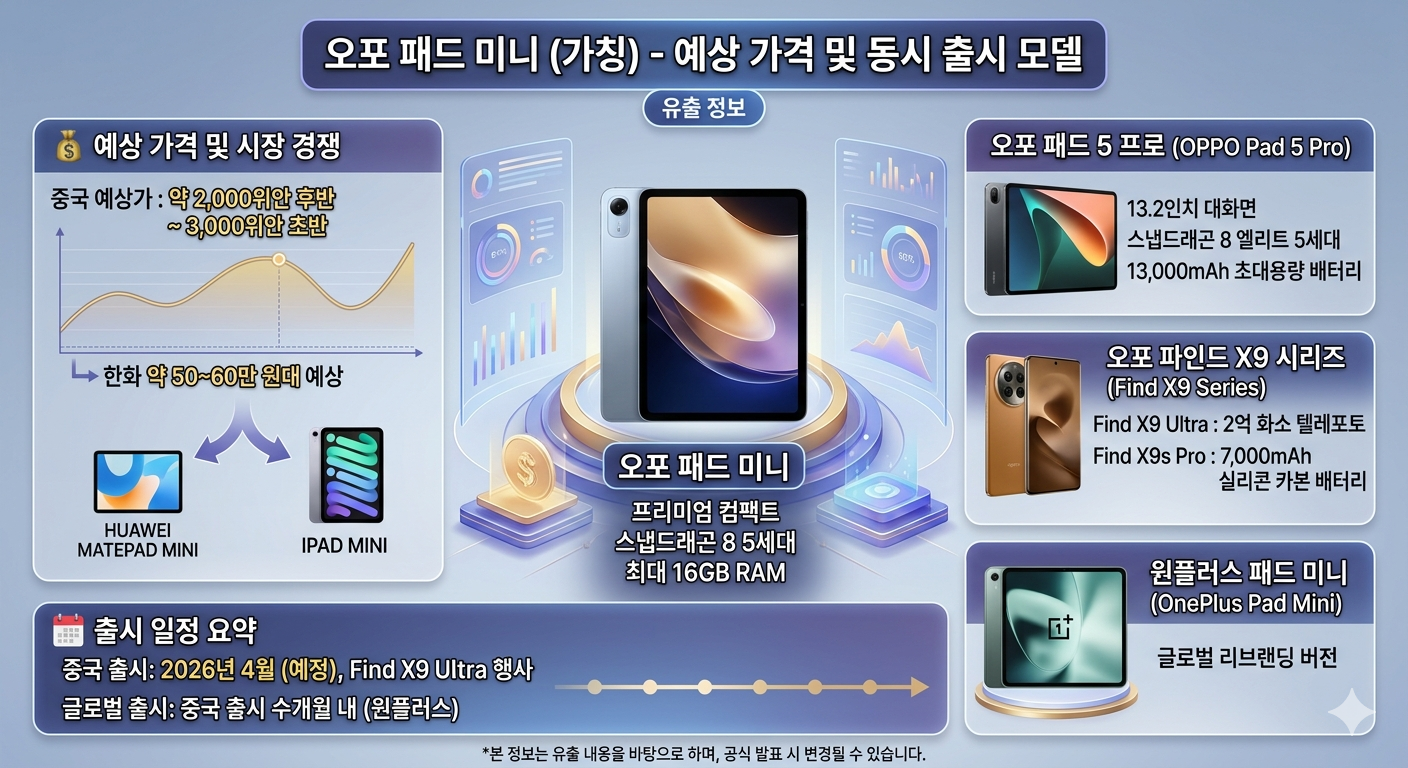 오포는 2026년 4월경 대규모 신제품 발표회를 통해 패드 미니 외에도 여러 플래그십 기기를 선보일 예정입니다.