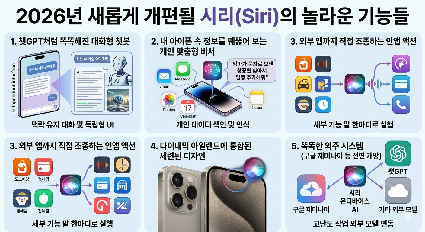 그동안 시리의 아쉬웠던 점들을 한 번에 날려버릴 핵심 기능들을 명확하게 정리해 드릴게요!