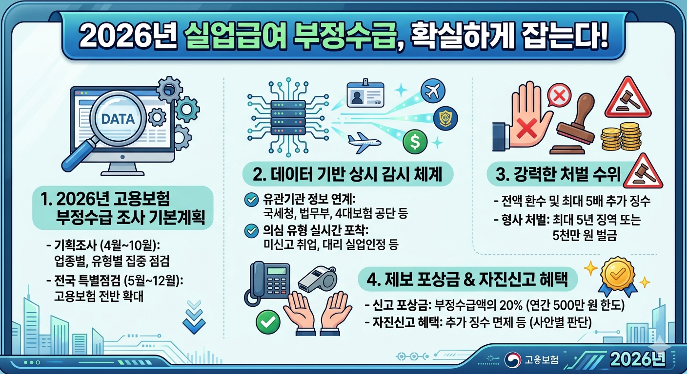 최근 발표된 '2026년 고용보험 부정수급 조사 기본계획'의 핵심 내용을 정리해 드립니다.