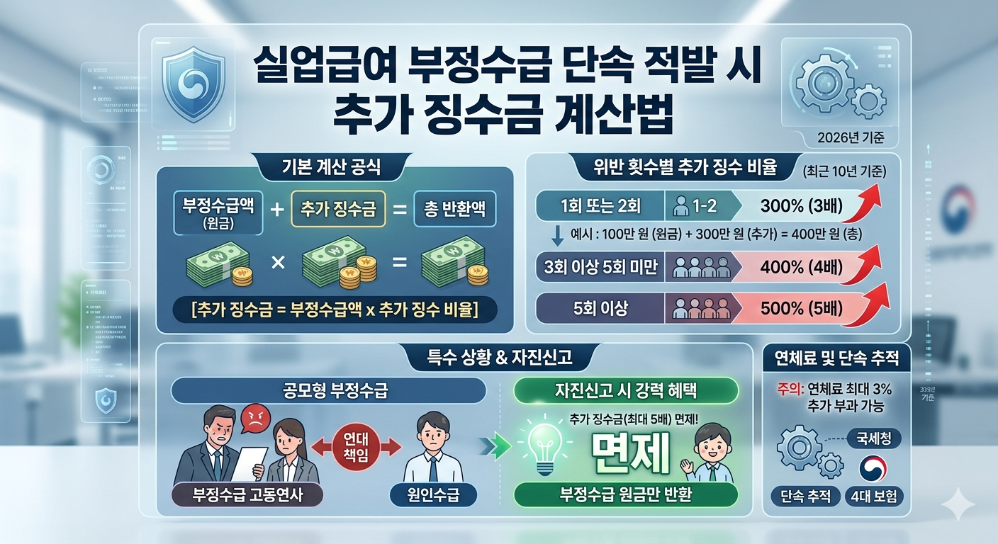 * 공모형 부정수급: 사업주와 짜고 허위로 서류를 꾸민 경우, 사업주도 수급자와 연대하여 책임을 지며 함께 추가 징수금을 부담하게 됩니다.