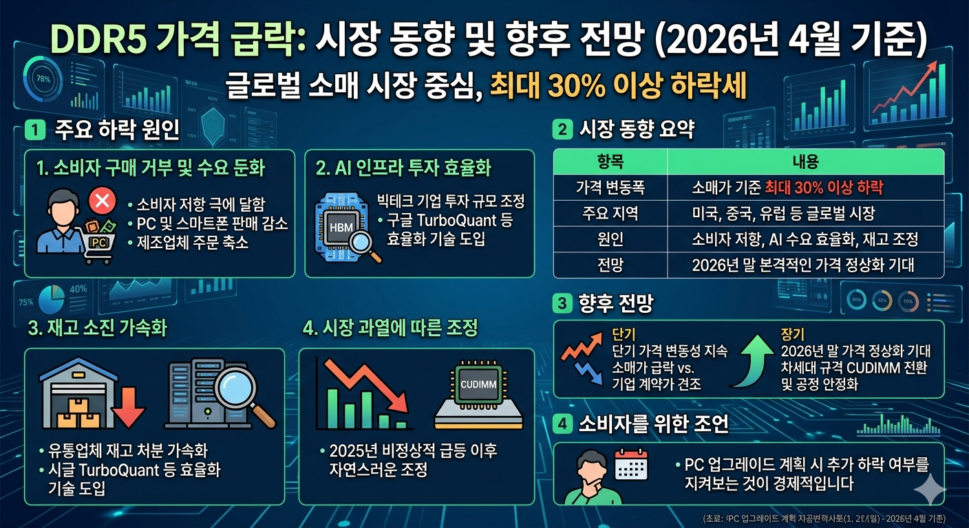 현재 PC 업그레이드나 시스템 구축을 계획 중이라면, 추가적인 하락 여부를 조금 더 지켜보는 것이 경제적일 수 있습니다.