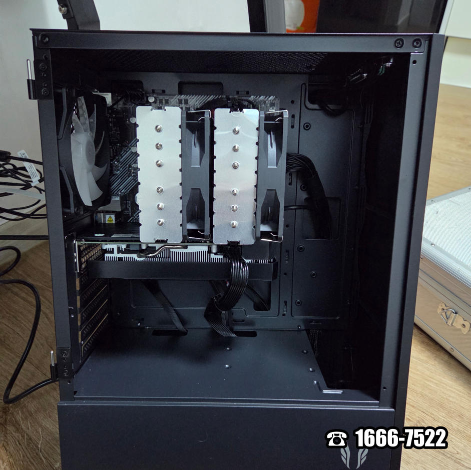 덮개를 열어 봤는데 내부는 공간이 거의 없습니다. CPU 공랭쿨러와 AMD Radeon RX 580 2048SP 그래픽카드는 아예 붙어 있는거 같죠? 누가 이렇게 구성했을까요? ㅠㅠ 암튼 DDR4-3200 16GB 메모리를 조치해야 해서 AMD Radeon RX 580 2048SP 그래픽카드를 먼저 탈착할 수밖에 없었습니다. 그리고 CPU 공랭쿨러에 쿨러 부분도 분리했습니다.