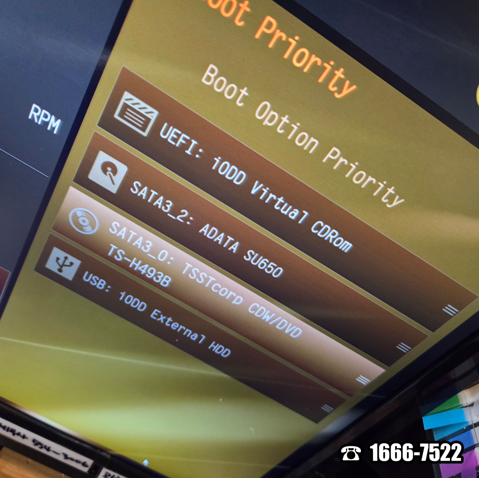 갑작스럽게 진행하는 거라서 장비를 갖추지 못했습니다. ㅠㅠ 예전처럼 파티션을 설정해 드릴 생각입니다. 시간은 좀 더 소요되겠죠? 강남역 역삼동 컴퓨터수리는 전원을 켜고 단축키 F2를 눌러 ASRock H110M-HDV 메인보드 바이오스에 진입했습니다. 모든 장치가 잘 작동하고 있습니다. Boot Priority에서 iODD Virtual CDRom을 첫 번째 순서로 설정하고 단축키 F10을 눌러 저장합니다.