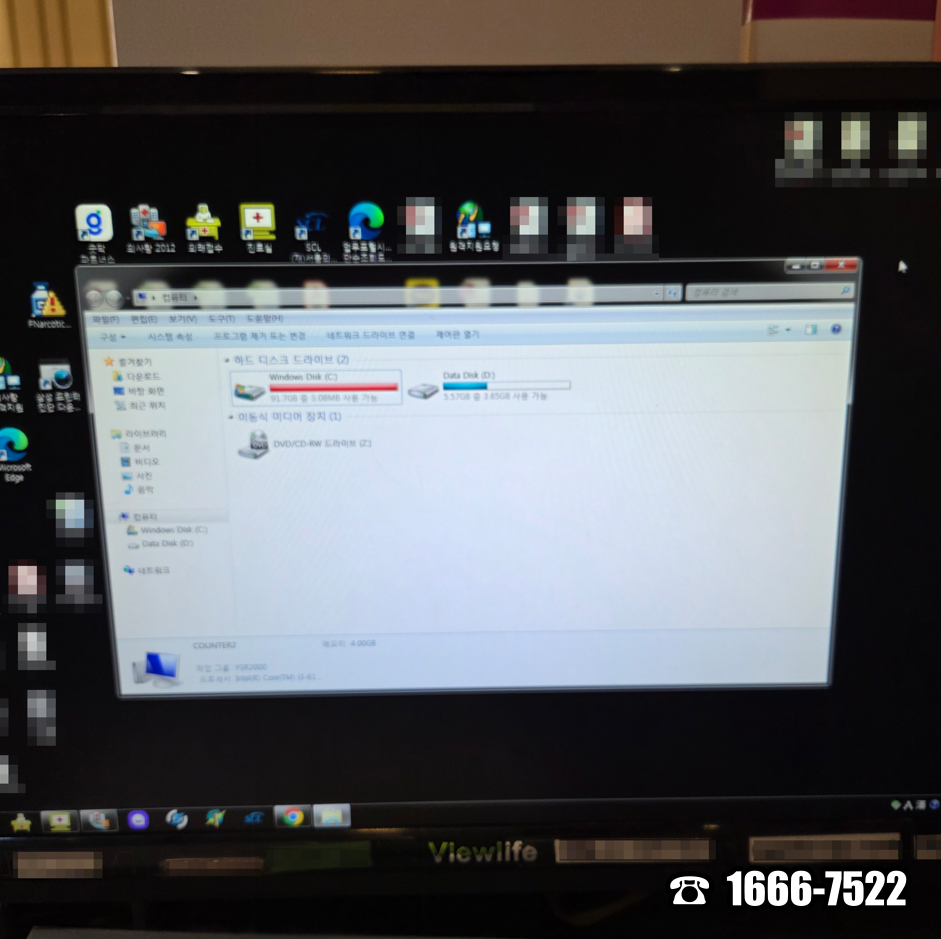 안녕하세요^^ 강남역 역삼동 컴퓨터수리입니다. 산부인과 병원에서 조립PC를 사용하시는데 관련 프로그램을 전혀 실행할 수 없었습니다. 그래서 C드라이브 용량을 확인해 보니 부족하다고 하시더군요^^ SSD 용량 업그레이드를 부탁하셔서 출장 갔습니다. 이미 전원은 켜져 있었고 C드라이브 용량을 보니 3MB 정도밖에 남지 않았습니다. 지금까지 사용한 것도 용한 일입니다.