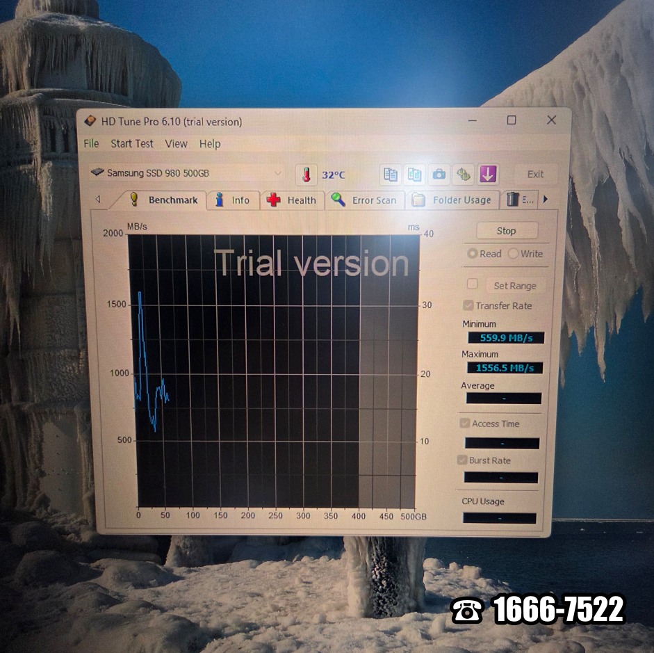 자료까지 제공해 드렸는데 막상 시도하려니 뭔가 안되셨던 모양입니다. ㅠㅠ 다른 원인이 있을 수 있기 때문에 잠시 점검을 진행했습니다. 내 PC에 드라이브 용량은 넉넉하게 남아 있었습니다. 그리고 Intel(R) Core(TM) i5-13400 CPU 구성으로 드라이버 충돌이 없습니다. HD Tuen Pro를 실행해 Samsung SSD 980 500GB를 테스트했는데 벤치마크 속도도 잘나오고 디스크 상태도 오류는 없었습니다.