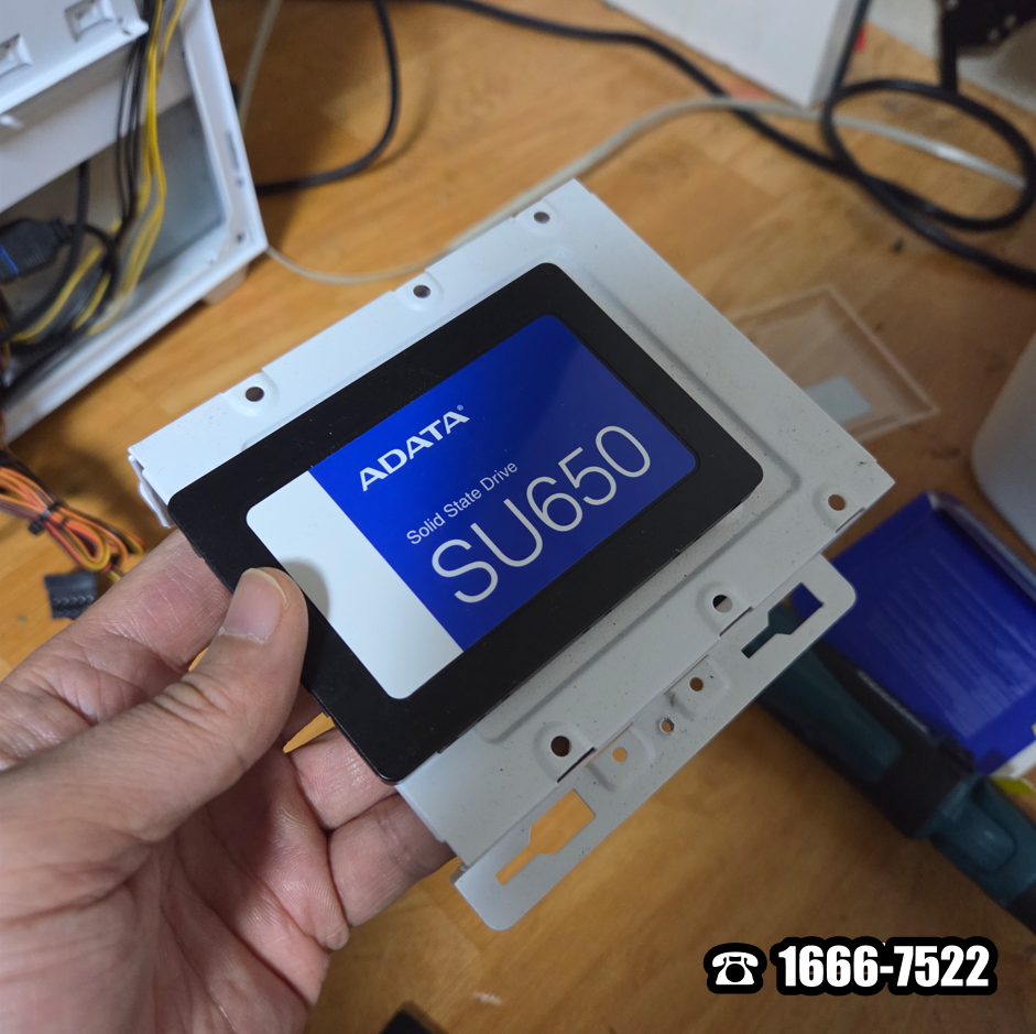 다행히 고장입니다. ㅠㅠ 계속 조립PC를 사용하려면 교체해야 합니다. 반대편 덮개를 열고 바닥에 나사 두 개를 풀어 가이드와 함께 Micron_1100_MTFDDAK1T0TBN을 탈착했습니다. 그리고 ADATA SU650 SSD 512GB를 가이드에 조립하고 장착했습니다. 이전과 속도 차이는 없을 겁니다. 다만, 초기화되니 약간에 속도 향상은 있을 겁니다.