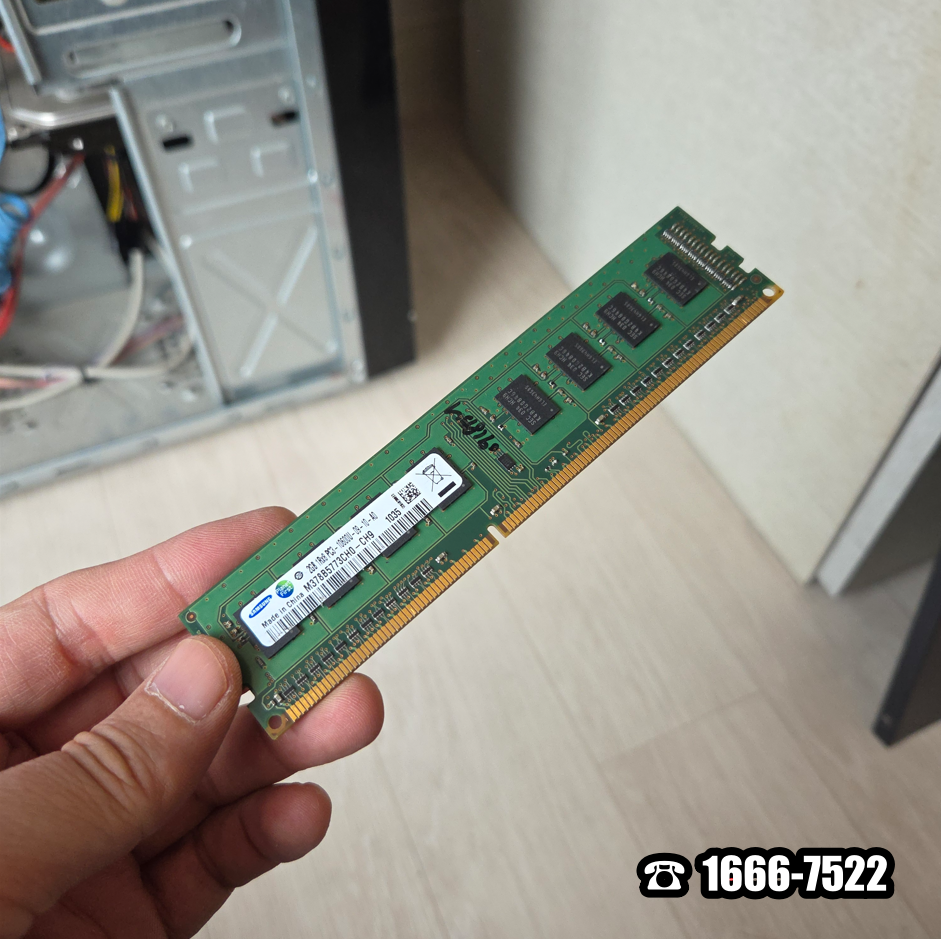 안타깝게도 DDR3-10600 2GB 메모리 하나밖에 장착되지 않은 상태였습니다. 워낙 구형이라서 그땐 2GB 용량으로도 충분했었죠. 다행히 공구 가방에 DDR3-10600 2GB 메모리가 하나 더 있었습니다. 잘 설명드리고 최소한 4GB 용량으로 맞추자고 해서 장착했습니다. 아마도 이전보다 월등히 빠른 속도를 제공할 것입니다. 어느 정도 마음이 안정이 왔습니다.