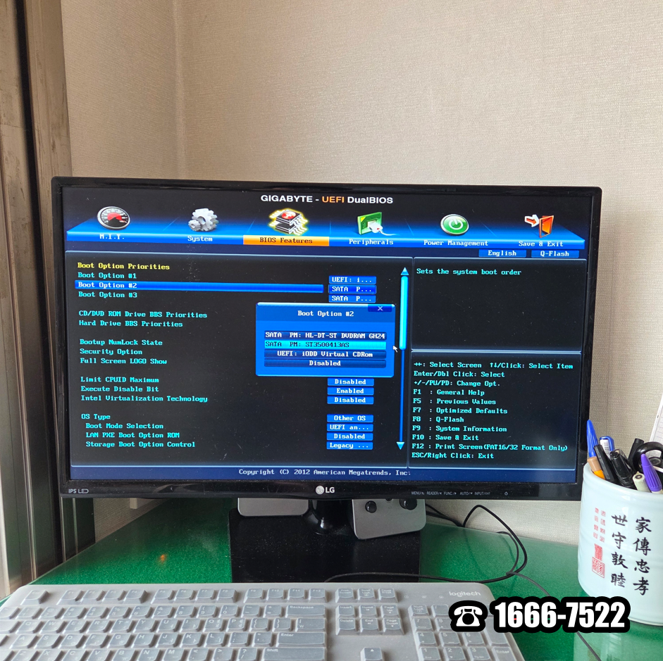 재부팅하고 단축키 DEL을 눌러 GIGABYTE H61M-DS2V 메인보드 바이오스에 진입했습니다. Intel(R) Pentium(R) G2020 CPU 구성 정도면 보급형 2세대로 윈도우10으로 사용하기에 충분합니다. 부팅 순서를 변경하기 위해 BIOS Features로 이동했습니다.그런데... SSD는 보이지 않고 ST3500413AS 하드디스크만 보입니다. 지금까지 이렇게 사용하셨답니다. ㅠㅠ