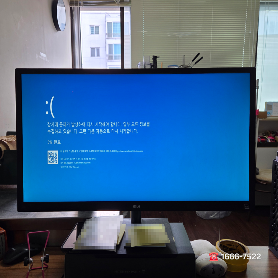 안녕하세요! 대성유니드 신내동 컴퓨터수리의 진짜 후기입니다. 업무용으로 조립PC를 사용하시는데 REGISTRY_FILTER_DRIVER_EXCEPTION 블루스크린이 뜨고 윈도우 부팅이 안돼서 휴일 출장 갔습니다. 다행히 재부팅하니 부팅은 되더군요^^ 내 PC에 진입해 보니 C드라이브 용량은 꽉 차 있었고 드라이버 충돌도 없습니다. 단, 점검조차 힘든 상황이었습니다.