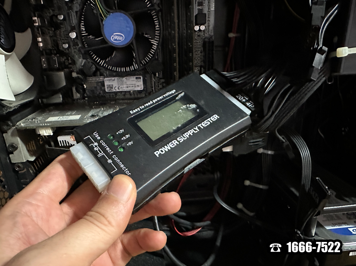 그렇다고 바로 교체해야 할까요? 아닙니다. 가져온 새 현대 PRIME 850K PLUS 파워에 테스터기를 연결했습니다. 같은 전원 케이블에 콘센트를 사용했는데 완전히 달라졌죠? 이 정도 했을때 신풍역 신길동 컴퓨터수리는 확실히 고장으로 진단했습니다. 사용자도 이런 과정을 보시고 더 믿음이 가는 거죠. 다짜고짜 어디가 고장이다? 절대 있을 수 없는 일입니다.
